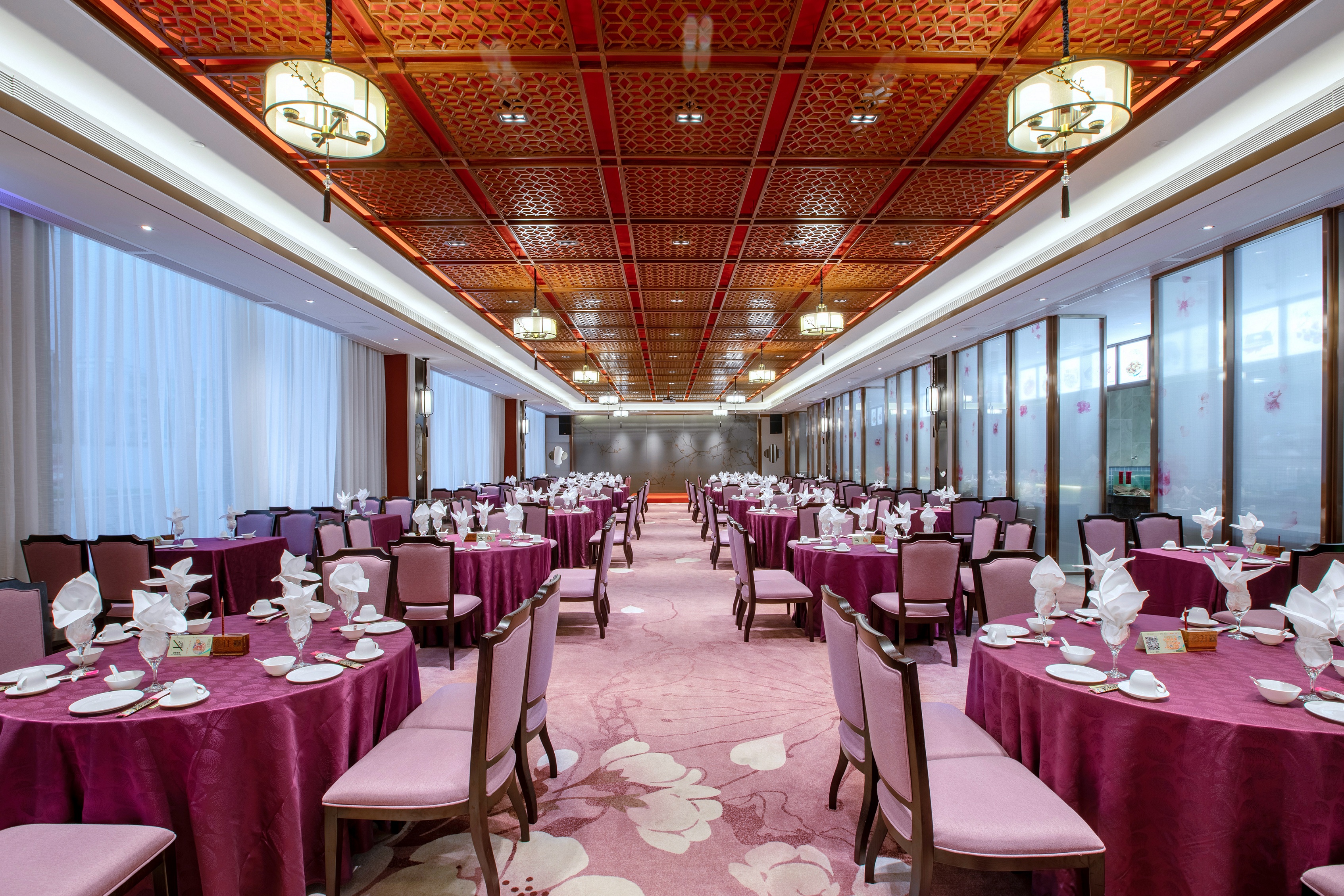 宴会厅可同时容纳近800人,配置大型LED屏幕,最多可延开40席。